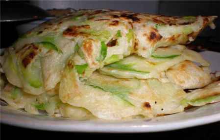 5.大约2分钟左右,饼底部已熟,晃动锅,饼会离开锅底,翻面继续煎熟。