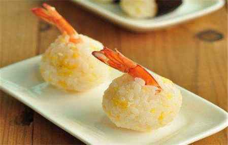 材料:大米 ,玉米渣,活虾,寿司醋,海苔。