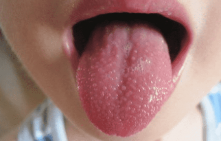 猩红热起病急骤,发热,体温一般38℃~39℃,重者可达40℃以上,婴幼儿起病时可能产生惊厥或谵妄。患者全身不适,咽喉疼痛明显,会影响到食欲。咽喉及扁桃体显著充血,亦可见脓性分泌物。**红,**红肿如草莓,称杨梅舌。颈部及颌下淋巴结肿大,有触痛。皮疹于24小时左右迅速出现,最初见于腋下、颈部与腹股沟,1日内迅速蔓延至全身。