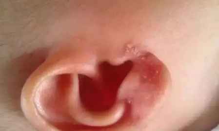 表现:耳朵可能会有皮疹、糜烂、渗出的现象。