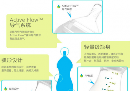 Born Free是全球采用不含双酚A材质生产婴儿奶瓶的企业之一,一贯秉承世界的高标准,为天下**提供优质的婴儿喂养用品。此款防胀气奶嘴设计,能够非常有效的防止宝宝因把空气吸入而引起的腹痛及吐奶;仿真****设计硅胶奶嘴,质地柔软;抗菌材质,无毒无害,防胀气,宽口奶瓶,清洗方便;PP材质瓶身,轻便易拿,透明清晰,清洗无死角;防漏盖设计,防止漏奶的同时有效预防细菌滋生。用bornfree的奶瓶喝奶,宝宝很容易就可以拍出嗝来哦!