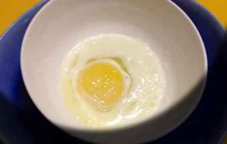 1.先将一个鸡蛋磕在碗里,不要搅动。