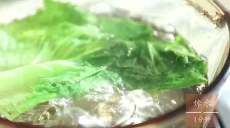 4、起锅烧水,水开后放入油麦菜焯水1分钟