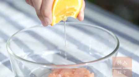 3、取1/4橙子,将橙汁挤入三文鱼肉中,搅拌均匀,腌制15分钟
