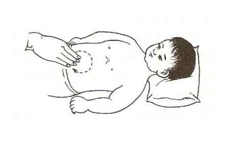 家长用手掌从宝宝左下腹开始逆时针按摩腹部,有温阳健脾止泻的作用;