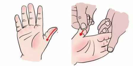 补脾经:穴在拇指桡侧赤白肉际处,由指尖到指根成一直线,自指尖推向指根。