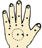 操作:用两拇指甲掐揉之,掐5~10次,揉100~300次。