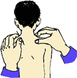 操作:用两手拇指与食指相对**捏拿肩上大筋,称拿肩井,约捏拿5~10次。