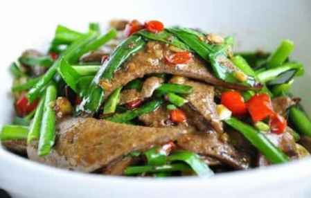 材料:猪肝用清水泡1个钟后待用;青椒;葱、蒜、姜、淀粉适量。