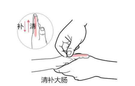 清补大肠5分钟,退下六腑3分钟,推上三关2分钟,分阴阳1分钟,揉龟尾2分钟,推七节骨2分钟。