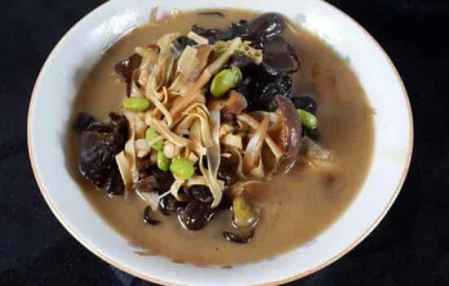 食材:干黄花菜20克、干木耳5克、猪瘦肉100克、盐、姜适量。