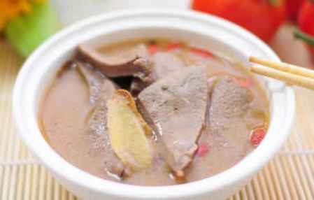 2、锅内下香油,小火待油烧热后加入姜片,煎至浅褐色再将猪肝放入锅内大火快速煸炒,大约5分钟后加适量清水煮沸约10分钟调味即可。