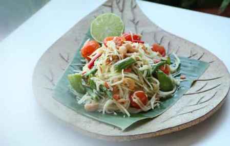 1.青木瓜去皮切丝,长豆切段、蕃茄切片备用。