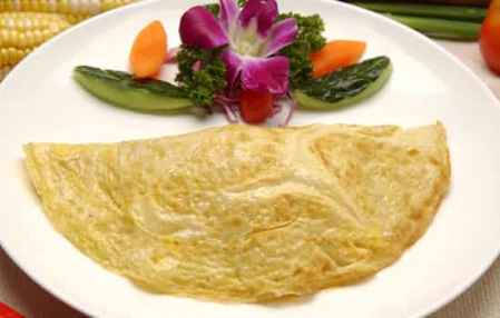2.烧热锅、下油1汤匙,将一只鸡蛋放入锅中,慢火煎至半凝固时,放下半份姜丝,洒下少许盐,招摺半月形,煎至两面**铲起上碟。同样的做法做第二个鸡蛋即可。