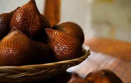 3、肉质甜中带酸,不会苦涩,也不会很干硬的感觉,果肉饱满像苹果一样的爽脆,果核也比较小,带有点点淡淡的香气。印尼,以巴厘岛和爪哇岛的日惹、万隆等地出产的蛇皮果品质较优,若蛇皮果果肉较涩,当属较差品质。
