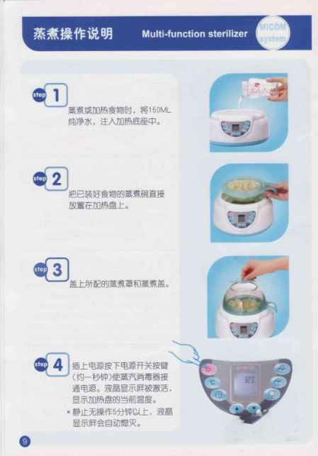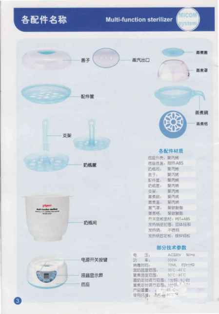 贝亲奶瓶消毒器说明书介绍