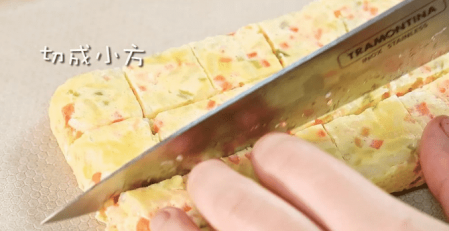 青菜梗和胡萝卜切小丁,三文鱼切小丁后盖上**片腌制10分钟去腥,碗内磕入鸡蛋搅打均匀,食材准备完毕(*^▽^*)