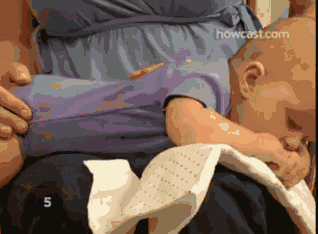 端坐式更方便于**进行操作,**坐好后让宝宝面朝自己坐在**上,**一只手托着宝宝的头,然后用另一只手轻拍宝宝的上背部。同时,要注意事先为宝宝准备好一条小毛巾,防止吐奶。如果宝宝在拍打几次之后都没打嗝,**也不要着急,可以先抚摸宝宝一会再进行拍嗝。