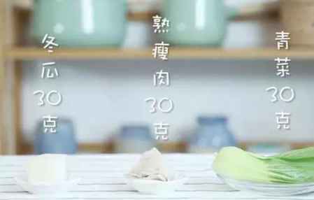食材:冬瓜30克,青菜30克,熟瘦肉30克