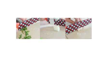 3、青菜去梗留叶,青菜叶切碎,冬瓜和熟瘦肉切小块。菜梗纤维较多,小宝宝不建议添加。