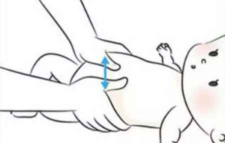 其次,双手拇指放在肚脐两侧,由中心向外平行分推开来,力道要慢、缓、柔、圆,以缓解宝宝的胀气和便秘问题。
