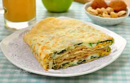 最后,把馅料倒入烤盘的米饼中,烤30-40分钟,然后取出,晾凉切块。可以在蘸着辣椒酱或者胡椒粉一起吃哦。