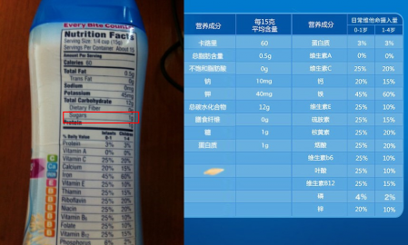 买过进口版嘉宝米粉的**们可能会发现配料表上注明了“sugars:1g”字样,这样是不是代表嘉宝米粉是含糖的呢?其实不然,sugars虽说是sugar的复数形式,但意思却不同。在食品行业,用sugar是指添加食用糖,而sugars是指植物、水果本身含有的糖分,就是说嘉宝米粉是不含提炼过的糖,指的是不含蔗糖。