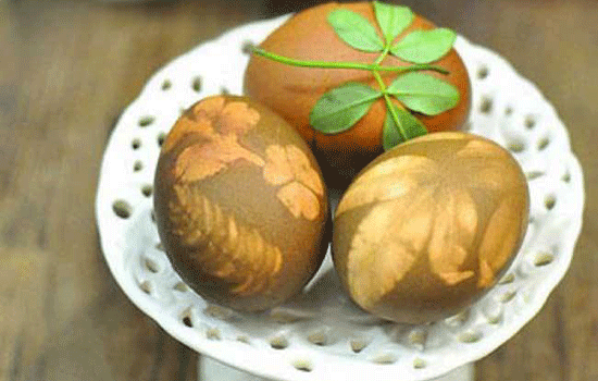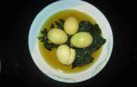 4.最后一步是将熟鸡蛋放入锅内,在放入鸡蛋之前在锅里加入艾叶药液和红糖,置武火烧沸,再用文火煮8分钟即成。