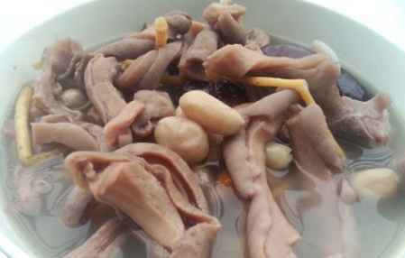 食材:无花果干60克、花生50克、猪肚1个、生姜3片。