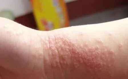 红色米粒状丘疹,融成一片后有,棕**结痂,不及时治疗继发感染几率大。