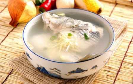 2、并在鱼肚**葱段、姜片,使去腥味。