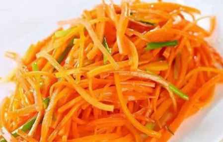 2、然后放胡萝卜,一直炒到胡萝卜丝变软,放些盐就可以出锅了。