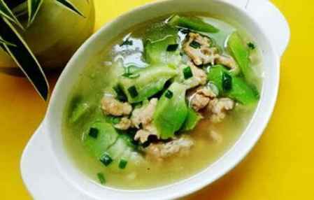 2.待锅里水开后,放入丝瓜、肉片一齐滚汤。