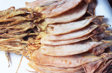 最好选择体长粗壮、平坦无缝隙、浅棕色、半透明光泽的体,如果表面有白色粉末,这是正常的,这是干鱿鱼暴露在空气中造成的。 选择时,也可以用手触摸。 最好有粉感,干而不湿,没有霉斑。另外,好的鱿鱼干应该有强烈的鱿鱼味,并带有轻微的海洋气味但不臭。