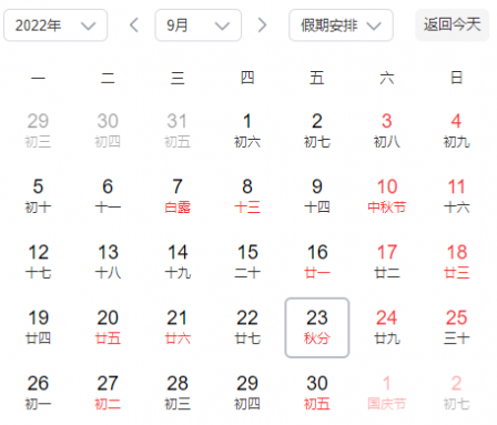 2022年的秋分是几号