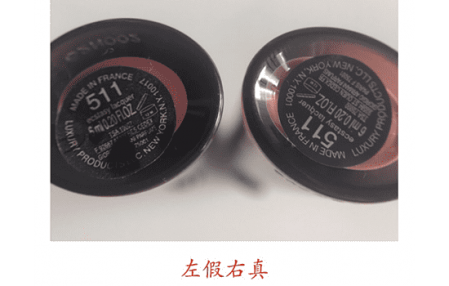 正品底部往内凹进去的比较浅,仿冒品会深很多。贴纸上,正品的色号贴纸是哑光的,而仿冒品是反光带有噪点的。