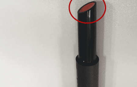 正品得鲜口红管口平滑,膏体切面下凹或与管口平齐,假货膏体则为凸起。