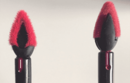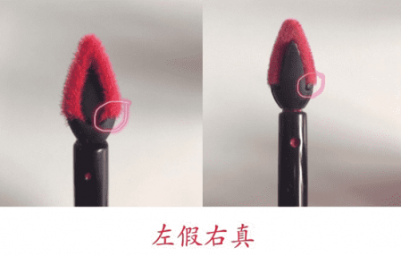 刷头的背面,注意圈出来的地方,正品的刷毛底部是有一段**的,而假货的刷毛是直接**那底部的弧形底缝,没有一点空位。而且正品的刷头的毛很绒很短比较密集,而假货的刷毛反之比较长、很炸。