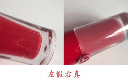 放大图片,可以从上方透明部分看瓶底,假货明显中间有个凸凸的圈圈,比较大而且看起来粗糙中间有个结一样,而正品是个很小存在感的突起而已。