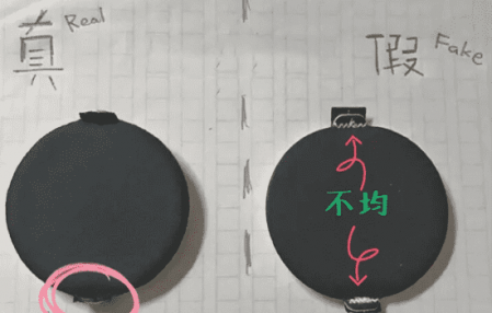 正品的粉扑摸上去较为平滑,但可以感受到明显的凹凸感。仿冒品则可以感受到明显的颗粒感,摸起来平滑无凹凸。