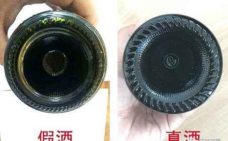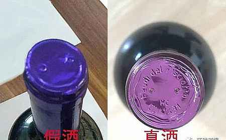 首先就是帽体的颜色,真酒的颜色是葡萄紫色的,偏紫红色,而假酒则是蓝紫色的,显而易见的区别。
