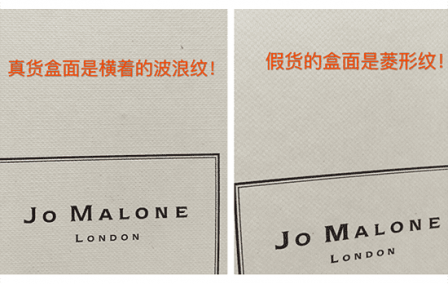 可以看出正品的盒面是横着的波浪纹,而仿冒品无法做出这种感觉,只是简单地菱形纹而已。