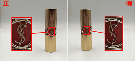 正品YSL雕刻字体较粗,连接处有横杠。假货YSL雕刻字体很细,连接处光滑没有多余。