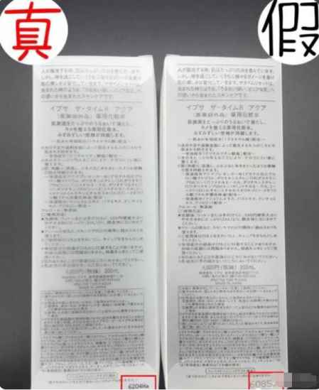 从外包装盒底部的喷码能够看出差别,正品的IPSA茵芙莎流金水的批次喷码,非常的精细,但清晰,字体颜色也更深一些,而假货的批次喷码颜色太浅,虽然大,但是模糊。