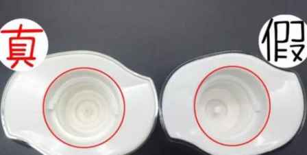 打开你手中的流金水,看看**瓶盖属于哪种,正品的瓶盖内部是有环圈的,中间的防漏塞柱是空心的,而假货的内部结构没有环圈,中间的防漏塞柱是实心的。
