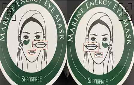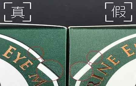 最后我们再看印刷的问题,正品的香蒲丽眼膜外包装正面的人头像白色外圈的外面还有一个黑圈包住了,而假货的香蒲丽眼膜外包装正面人头像处只有一个白圈,并没有黑圈包围。
