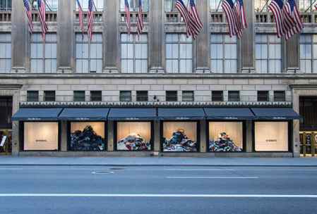 身为一个时尚的先驱品牌,一定会了解到它对新世代的影响。VETEMENTS为了负起它的社会责任,特别与美国Saks Fifth Avenue合作宣导「垃圾问题」,在橱窗上陈列出堆积如山的商品,象徵时尚所带来废料**,而所有的陈列商品也会在之后捐献给衣物回收中心RewearAble,提供给需要帮助的人。