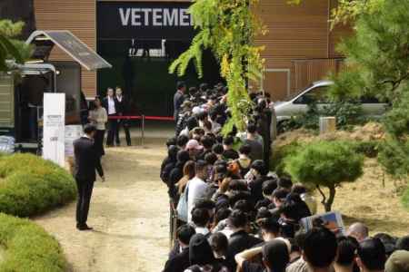 当然,经营品牌一定会有些类似的宣传手法,如设置Pop-up Store,但VETEMENTS选择的地点,也相当的出人意料。2016年时,就在韩国首尔近郊的车库,举行了一个“Garage Sale”,还推出了‘Official Fake’ 胶囊系列,排队人潮从凌晨5:00就开始络绎不绝,就连G-Dragon也抵挡不了它的魅力,特别到场採购。