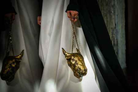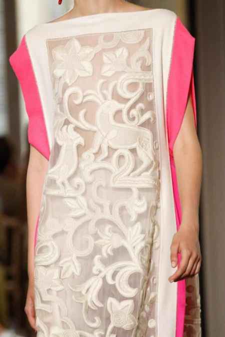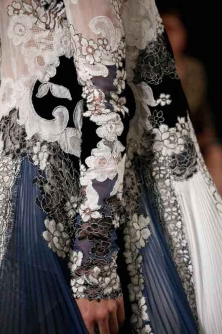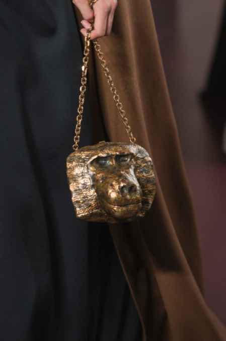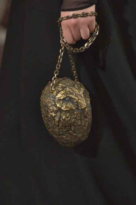 瀰漫的浓厚**气息的长版斗篷上衣与连帽披风、复古的图纹刺绣、高领套头衫,或是将简洁修身的长裙,胸前和肩膀做出特殊剪裁,搭配上细緻皱摺纹理、飘逸的荷叶裙襬以及精巧的串珠亮片,甚至模特儿手上拎著象徵「七宗罪」的动物造型提包,都像是正在举行一个神秘的**庆典,Pierpaolo Piccioli完美融合了两极性的罪恶与神圣,歌颂著新世代的简约却具有份量之美。