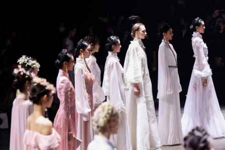 品牌一如既往的将中式美学意境与西式时尚剪裁完美融合,并区别于单纯的T台走秀,而呈现出国际顶级艺术水准的服饰秀演。吸引了众多国内外重磅嘉宾与各界社会名流人士的参与和瞩目。
